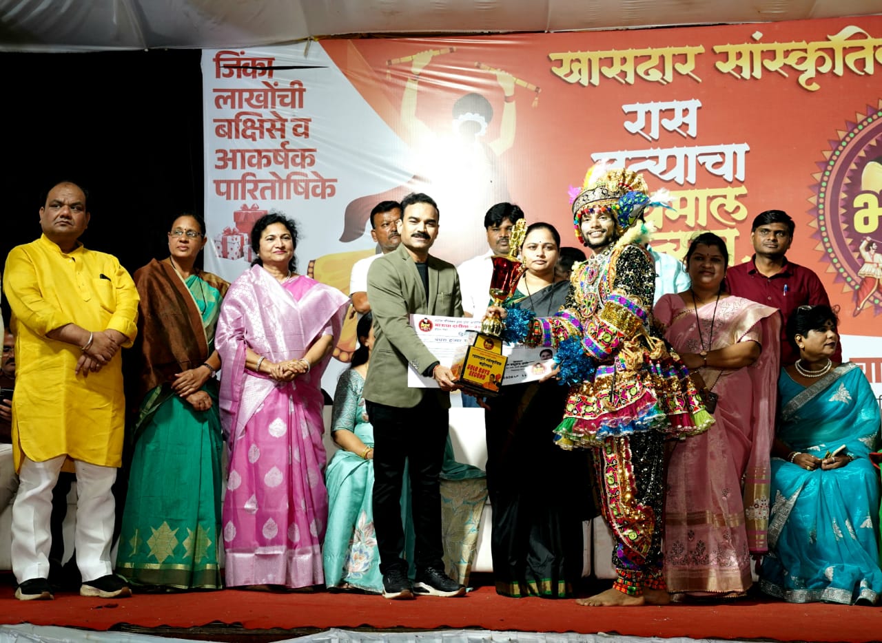 चंद्रपूर - "दिवंगत खासदार बाळूभाऊ धानोरकर यांची प्रेरणा आणि चंद्रपूरकरांचे प्रेम यांमुळेच हा महोत्सव दरवर्षी अधिक उत्साहाने पार पडतो," अशा भावनिक शब्दांत आपल्या भावना व्यक्त करत खासदार प्रतिभा धानोरकर यांच्या प्रमुख उपस्थितीत 'खासदार सांस्कृतिक महोत्सव-भाऊचा दांडिया' या सोहळ्याचे चौथे वर्ष दिनांक २ ऑक्टोबर रोजी थाटामाटात संपन्न झाले. दिवंगत बाळूभाऊ धानोरकर यांच्या स्मृतीला वंदन करत सलग अकरा दिवस (२२ सप्टेंबर ते २ ऑक्टोबर) चांदा क्लब मैदानावर दांडियाचा मनसोक्त आनंद लुटला. यावेळी गुणवंत कलाकारांना दुचाकीसह लाखो रुपयांच्या रोख पुरस्कारांचे वितरण करून त्यांच्या कलागुणांना सन्मानित करण्यात आले.