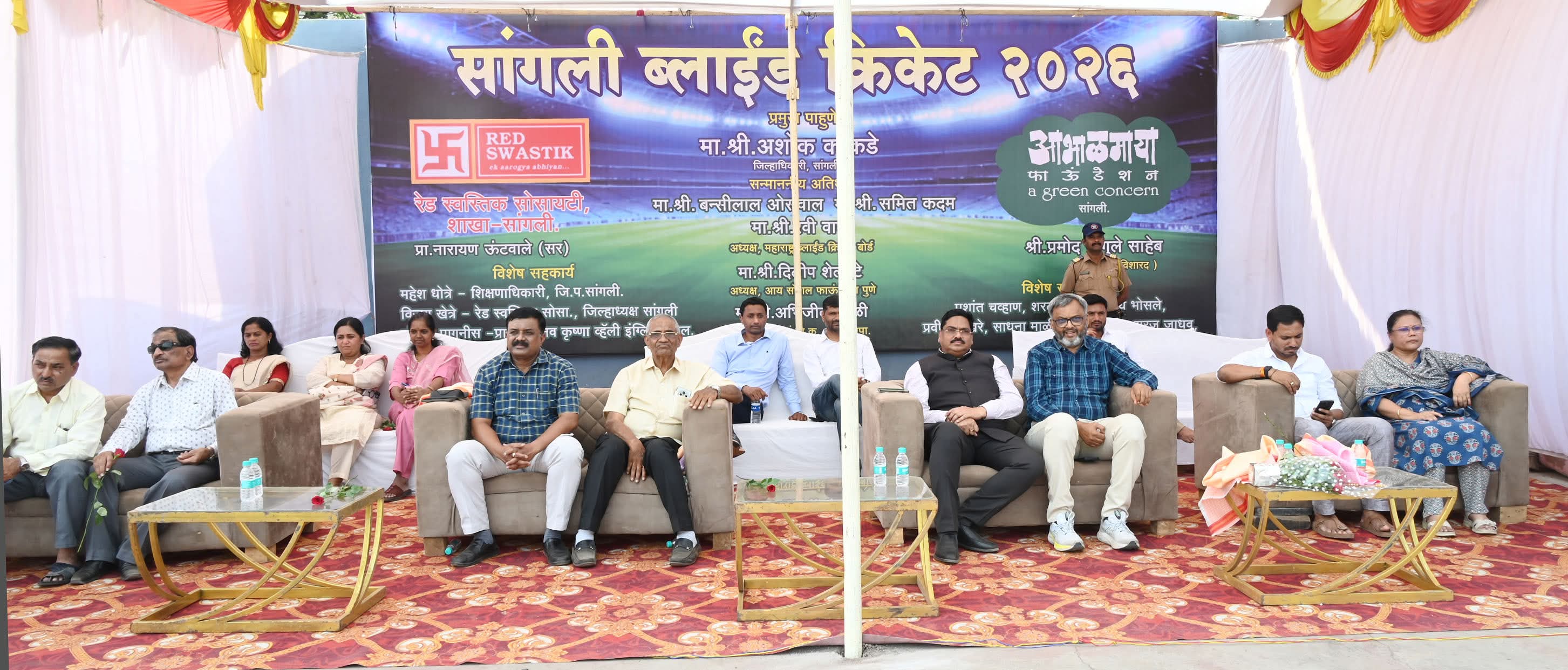 कुपवाड येथील नव कृष्णा व्हॅली इंग्लिश स्कूलच्या मैदानावर आयोजित या ब्लाइंड क्रिकेट सामन्याला जिल्हाधिकारी अशोक काकडे यांनी स्वतः उपस्थित राहात या मुलांना प्रोत्साहन दिले. जिल्हा नियोजन समितीचे सदस्य समित कदम, तहसीलदार अश्विनी वरूटे, शिक्षणाधिकारी योजना महेश धोत्रे, वास्तुविशारद प्रमोद चौगुले, उद्योजक बन्सीलाल ओसवाल, जिल्हा माहिती अधिकारी संप्रदा बीडकर, नगरसेवक अभिजित कोळी, दिलीप शेलवंटे, नव कृष्णा व्हॅली इंग्लिश स्कूलच्या प्राचार्य संगीता पागनीस, रेड स्वस्तिक सोसायटी सांगली जिल्हाध्यक्ष विजय खेत्रे, कलाशिक्षक विजय कोळेकर, मुख्याध्यापक गजानन मोरलवार, साधना माळी, प्रवीण पाखरे, रेड स्वस्तिक सोसायटीचे ओंकार चिखले, राजेंद्र जामदार, विशाल लालवाणी आदि उपस्थित होते.