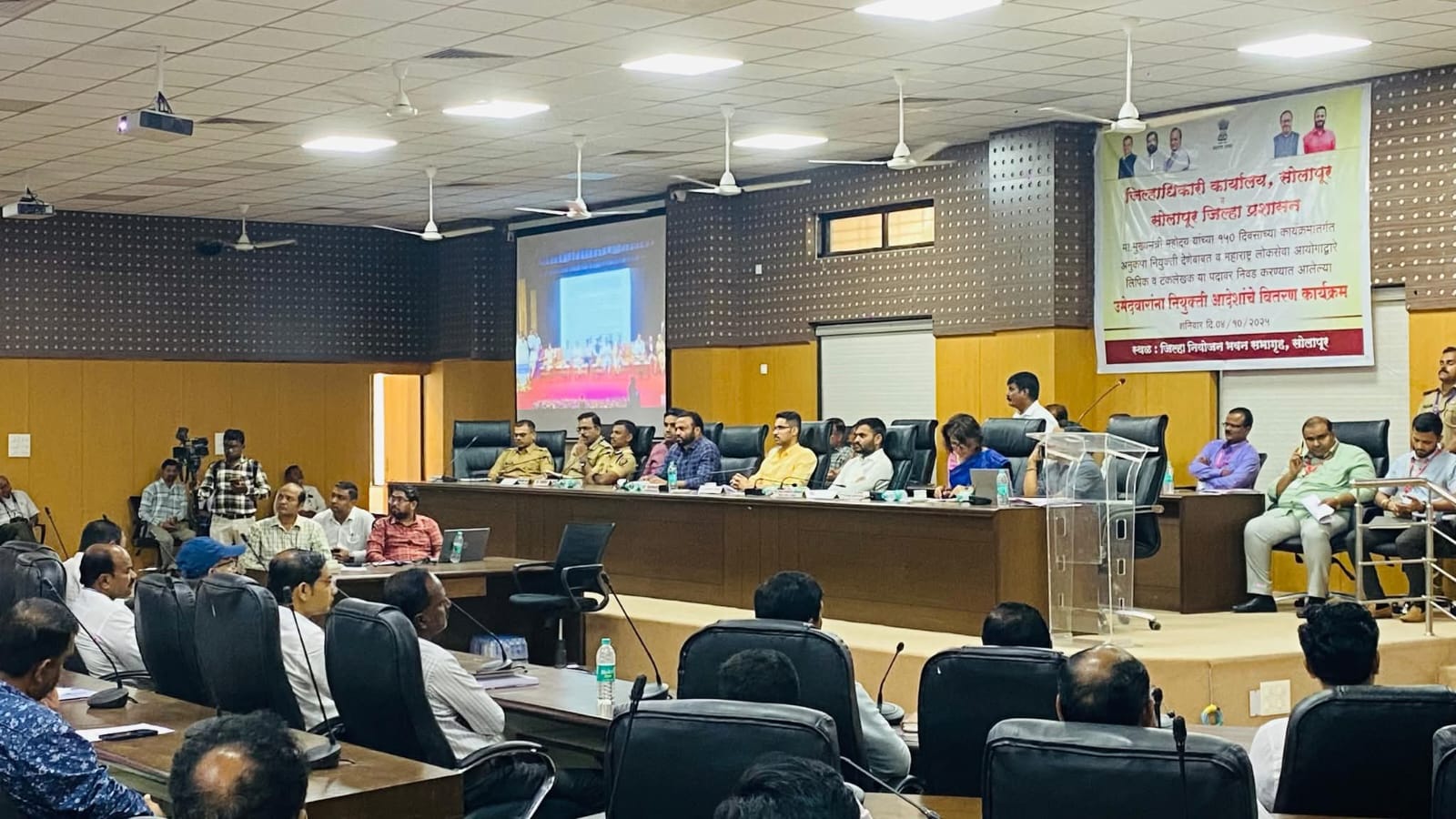 जिल्हा नियोजन समितीच्या सभागृहात आयोजित जिल्हास्तरीय अनुकंपा तत्त्वावर नियुक्ती देण्यात येणाऱ्या व महाराष्ट्र लोकसेवा आयोग कडून शिफारस केलेल्या नियुक्त उमेदवारांना नियुक्ती आदेशाचे वितरण प्रसंगी पालकमंत्री श्री. गोरे मार्गदर्शन करत होते. यावेळी आमदार देवेंद्र कोठे, जिल्हाधिकारी कुमार आशीर्वाद, शहर पोलीस आयुक्त एम. राजकुमार, मुख्य कार्यकारी अधिकारी कुलदीप जंगम, अप्पर जिल्हाधिकारी मोनिका सिंह ठाकुर, अतिरिक्त पोलीस अधीक्षक प्रीतम यावलकर यांच्यासह सर्व संबंधित विभाग प्रमुख तसेच अनुकंपा व लिपिक वर्गीय कर्मचारी उपस्थित होते.