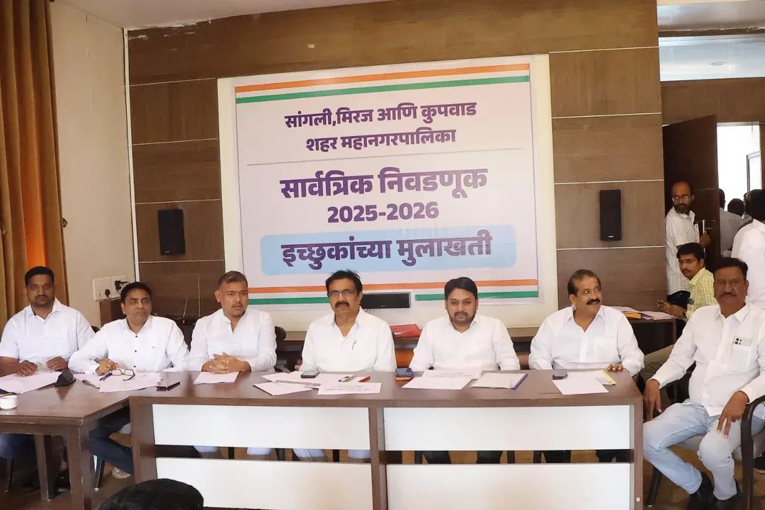 सांगली महानगरपालिकेच्या आगामी सार्वत्रिक निवडणुकीच्या पार्श्वभूमीवर महाविकास आघाडीतर्फे इच्छुक उमेदवारांच्या मुलाखती आज घेण्यात आल्या. या मुलाखतींमध्ये उमेदवारांची पक्षनिष्ठा, जनसंपर्क, सामाजिक कार्याचा अनुभव, स्थानिक प्रश्नांची जाण तसेच शहराच्या सर्वांगीण विकासाबाबतची दृष्टी यांचा सखोल आढावा घेतला गेला.