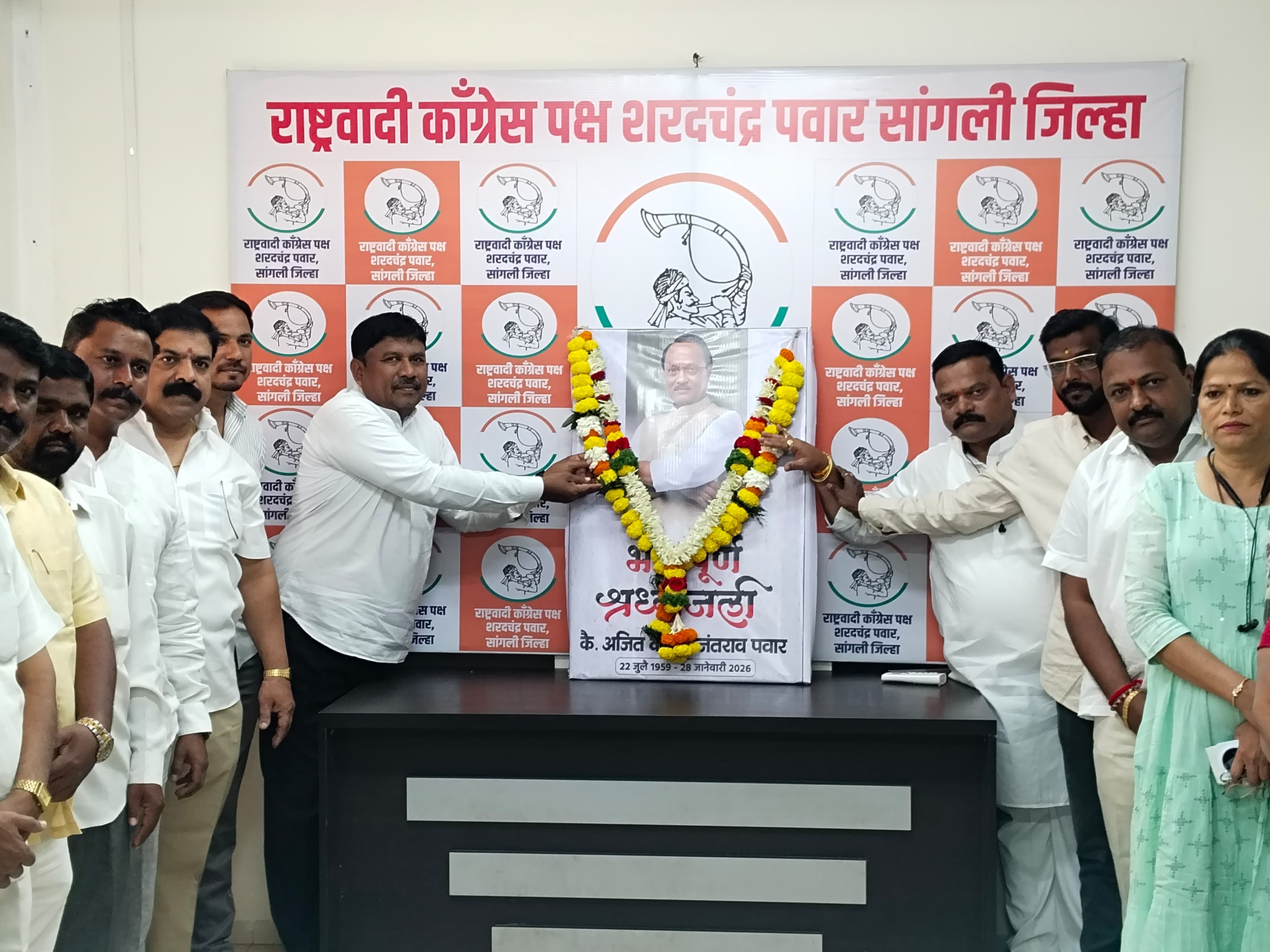 सांगली: महाराष्ट्राचे उपमुख्यमंत्री स्व.अजितदादा पवार यांच्या अकाली निधनानंतर आज राष्ट्रवादी काँग्रेस पार्टी शरदचंद्र पवार पक्षाकडून श्रद्धांजली वाहून अभिवादन करण्यात आले