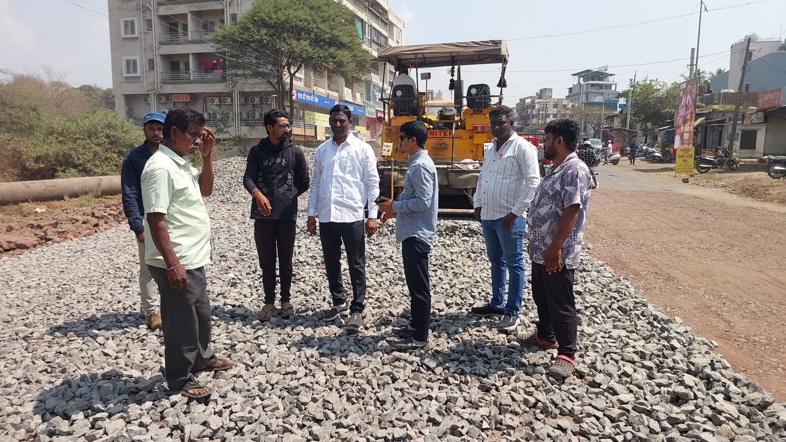 आज कुपवाड शहरातील प्रमुख रस्त्यापैकी एक असणारा भारत सूतगिरणीचे लक्षण मंदिर रस्त्याचे काम बऱ्याच दिवसापासून सुरू आहे. या रस्त्यावरून प्रचंड वाहतूक असून यावरती संथ गतीने काम सुरू असल्यामुळे या ठिकाणी वाहनधारकांना धुळीचे प्रमाण वाढलेले असून या ठिकाणी सदर रस्त्याचे काम जलद गतीने करण्यासाठी मागणी केली होती या अनुषंगाने आज उपमहापौर गजानन मगदूम यांनी या रस्त्याची पाहणी केली. तसेच कामामध्ये दर्जा राखण्याचे सूचना प्रशासन व कंत्राटदारांना दिली लवकरच या रस्त्याचे पूर्णत्वास आल्यानंतर ना कुपवाड शहरातील मुख्य रस्त्याचा प्रश्न मार्गी लागणार आहे यावेळी शाखा अभियंता ऋतुराज यादव,सामाजिक कार्यकर्ते मुदसर मुजावर उपस्थित होते.